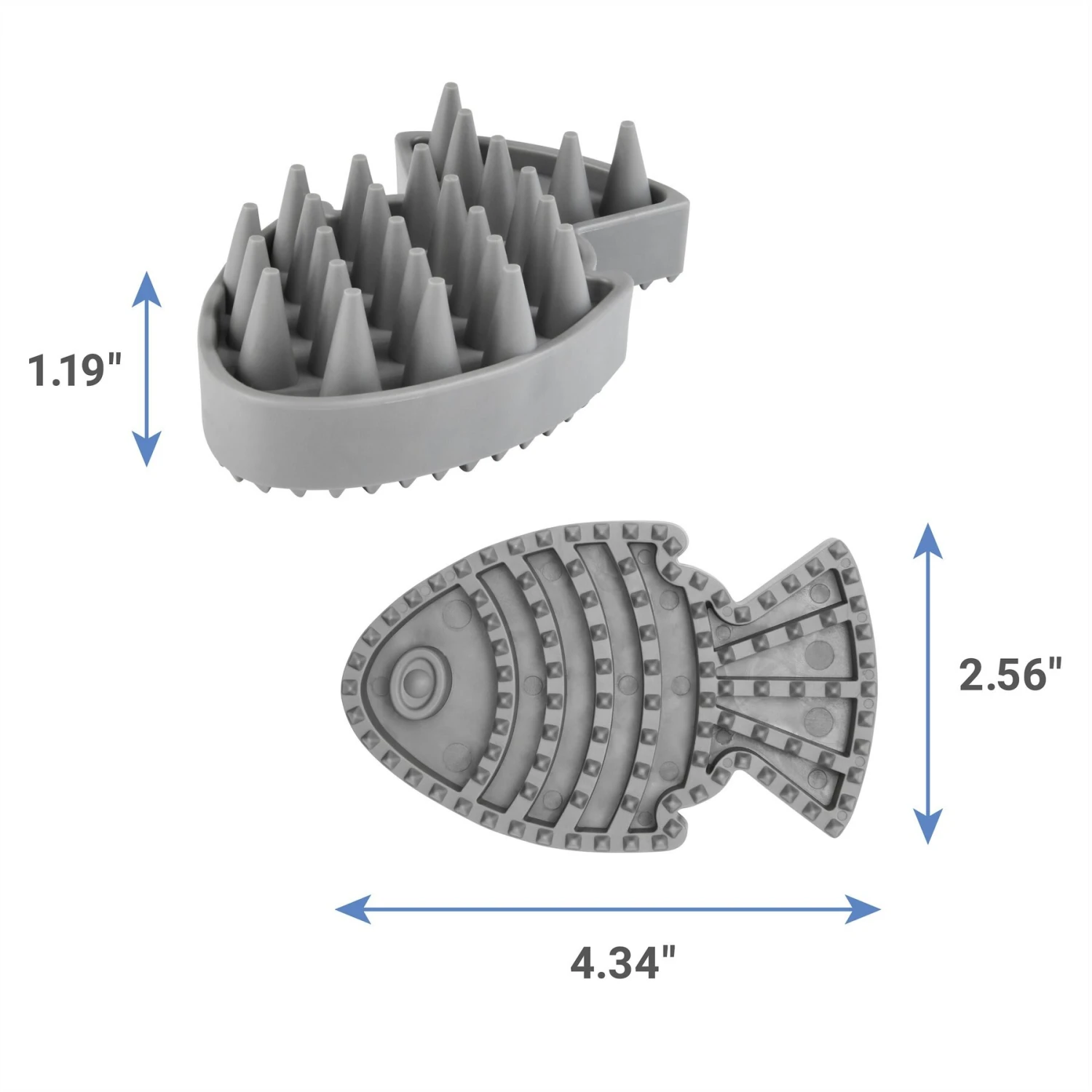 - From Frisco by Chewy. Fun, fish-shaped curry brush grooms, cleans and massages your cat all at once.