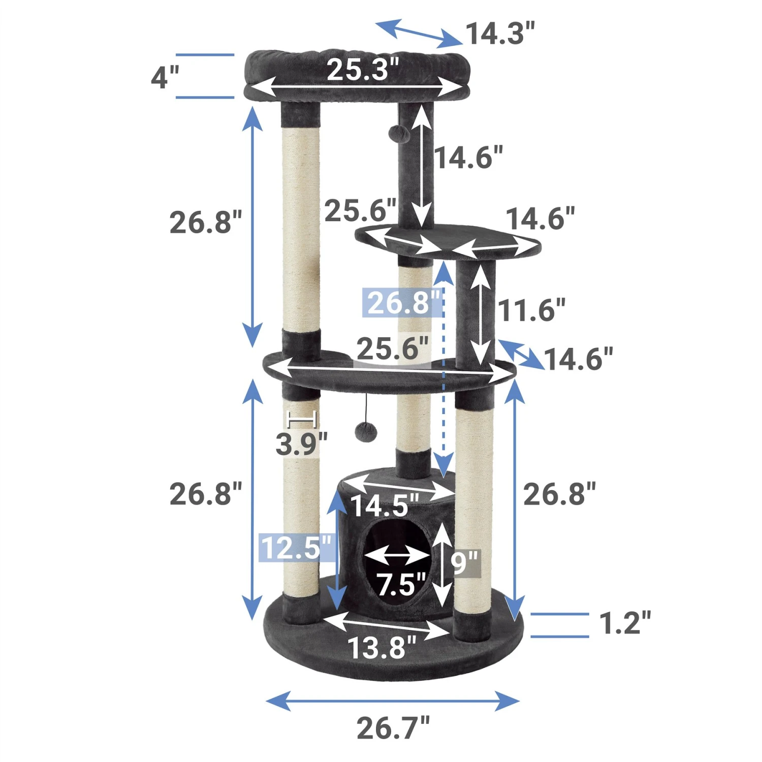 - 59.5-inch design with lots of space for scratching, playing, napping and relaxing.